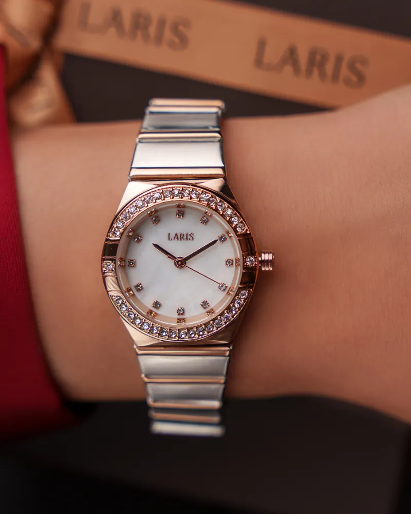 ساعة مها بنقوش عربيه بلون فضي و روز قولد | LAS012L